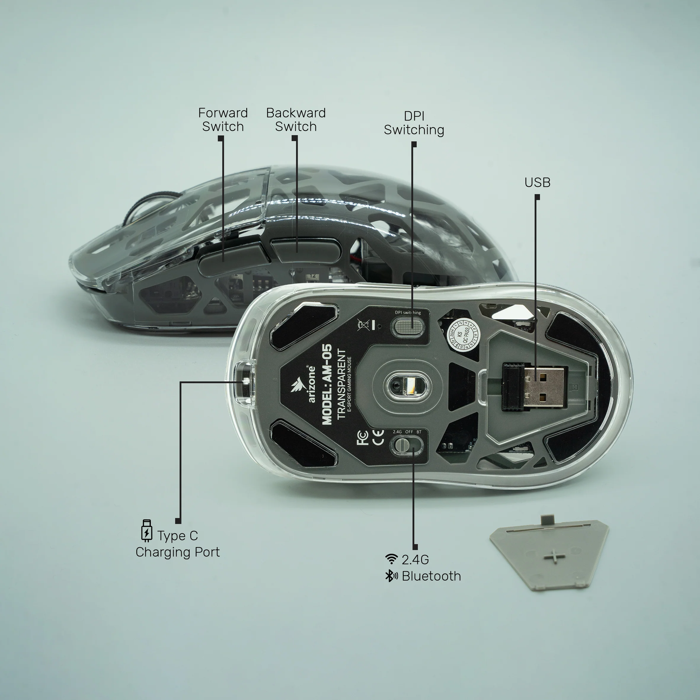 Optimisez votre espace de travail avec la souris sans fil transparente Arizone, alliant style, confort et performance. Grâce à sa double connectivité Bluetooth et sans fil 2,4 GHz, elle offre une connexion stable et polyvalente avec tous vos appareils. Le réglage DPI assure une précision optimale, tandis que les boutons de navigation avant/arrière facilitent l’utilisation. Sa coque transparente avec effets lumineux RGB apporte une touche de modernité à votre configuration, et son chargeur USB-C vous libère des contraintes liées à la batterie. Idéale pour le travail comme pour les loisirs.